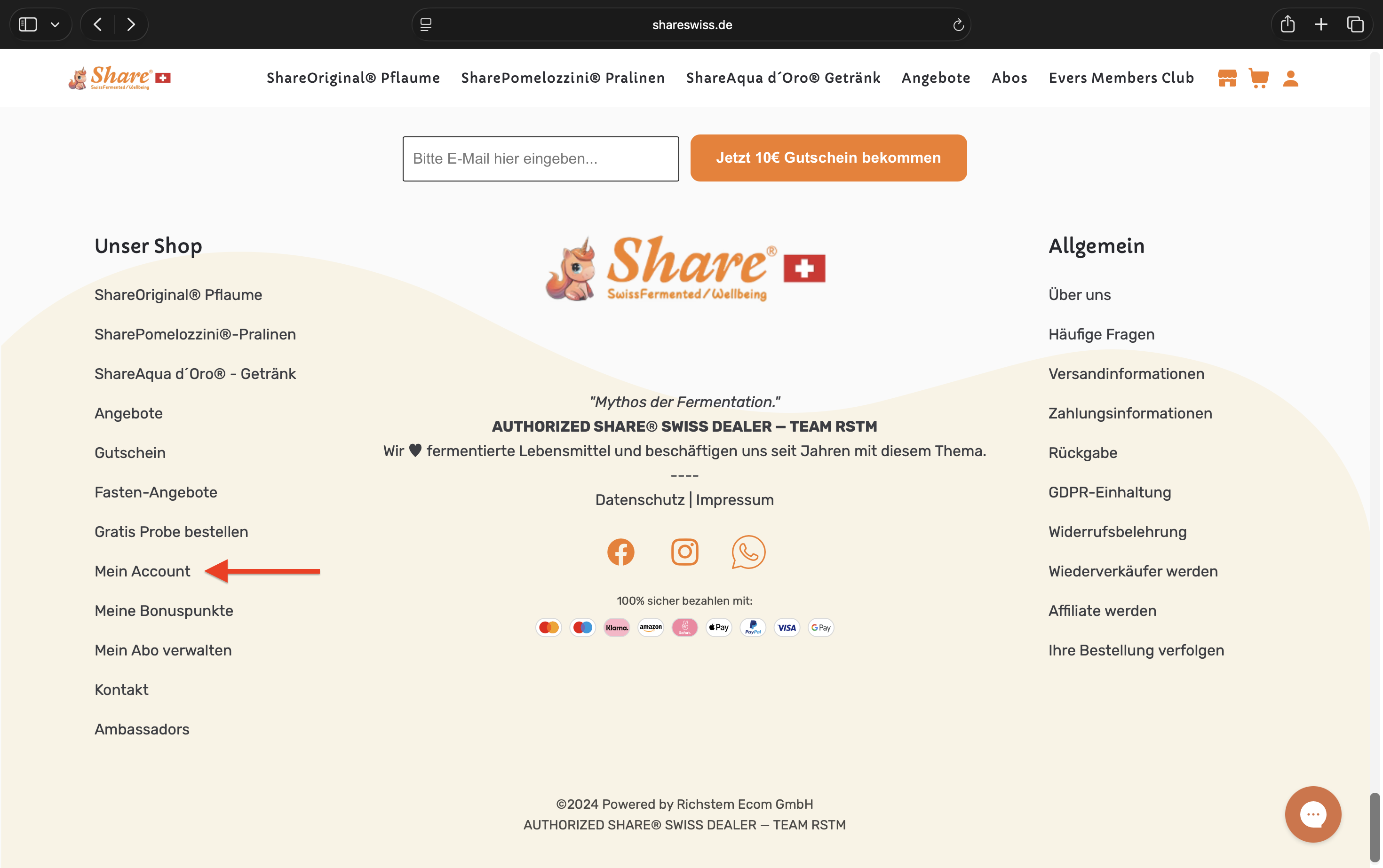 Auf unserer Webseite (Computer + Smartphone) findest du am Ende der Seite in der Fusszeile den Link zu deinem Account sowie deinen Bonuspunkten.