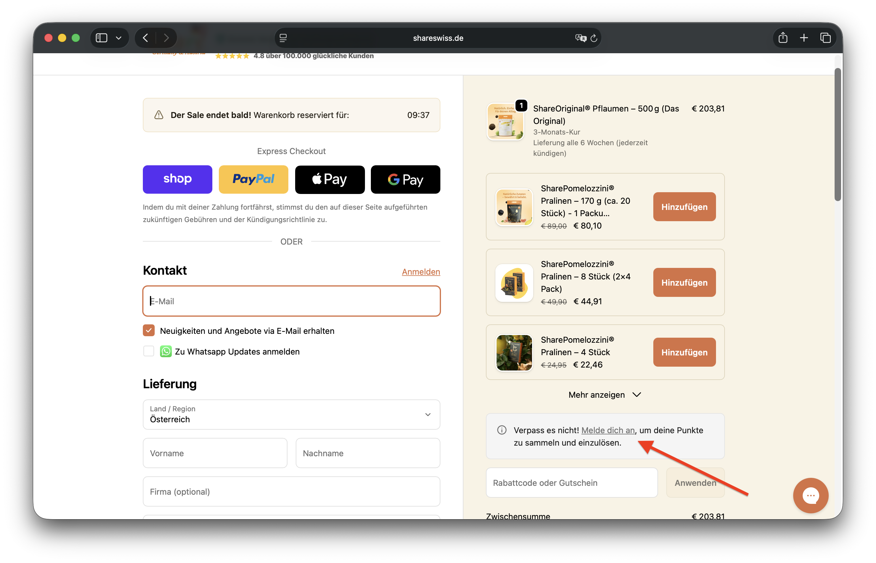 Wenn du die gewünschte Anzahl Punkte gewählt hast, klicke auf den orangen Button